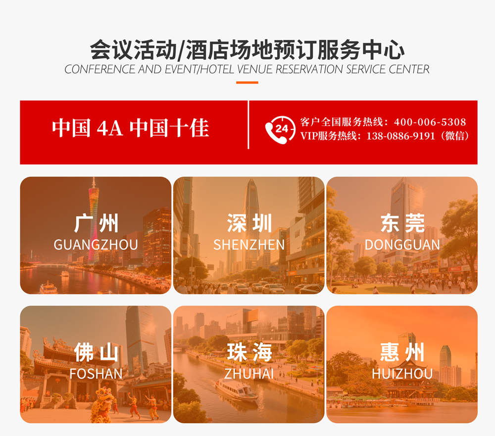 廣東大灣區會議場地、酒店、場服務中心,中國4A 十佳單位!覆蓋廣州深圳東莞佛山珠?;葜莸仁蓄愋蛨龅兀喝⑺?、五星酒店/體育場館/藝術中心/高爾夫球場等。23年專業經驗,集團近億元集采優勢,提供場地匹配、設備租賃、人員服務等管家式一站式服務。